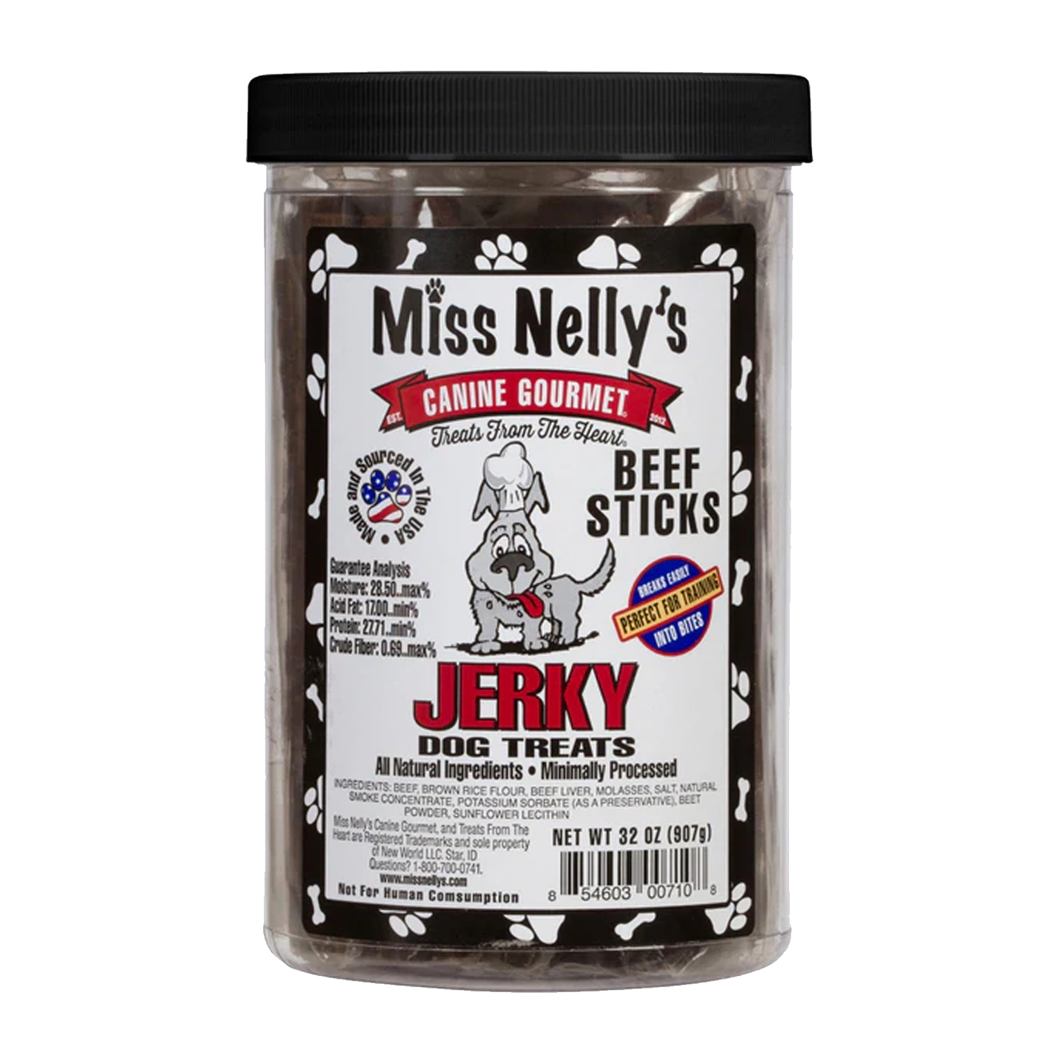 Miss Nelly’s Beef Sticks Jerky Dog Treats – 32 oz Tub